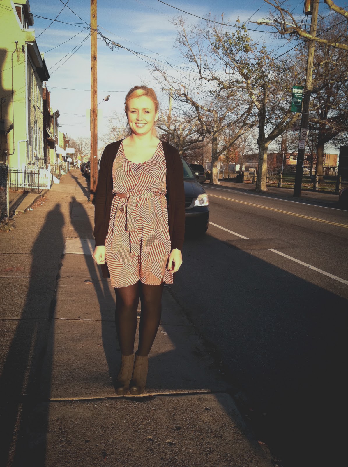 I was in downtown Philadelphia the other night for a meeting and I was SO excited to take my photos down there….only to realize I had my camera but no memory card. Darnit! But I really wanted to share this new dress and shoes with you. Both were gotten for 40% off on Cyber Monday!