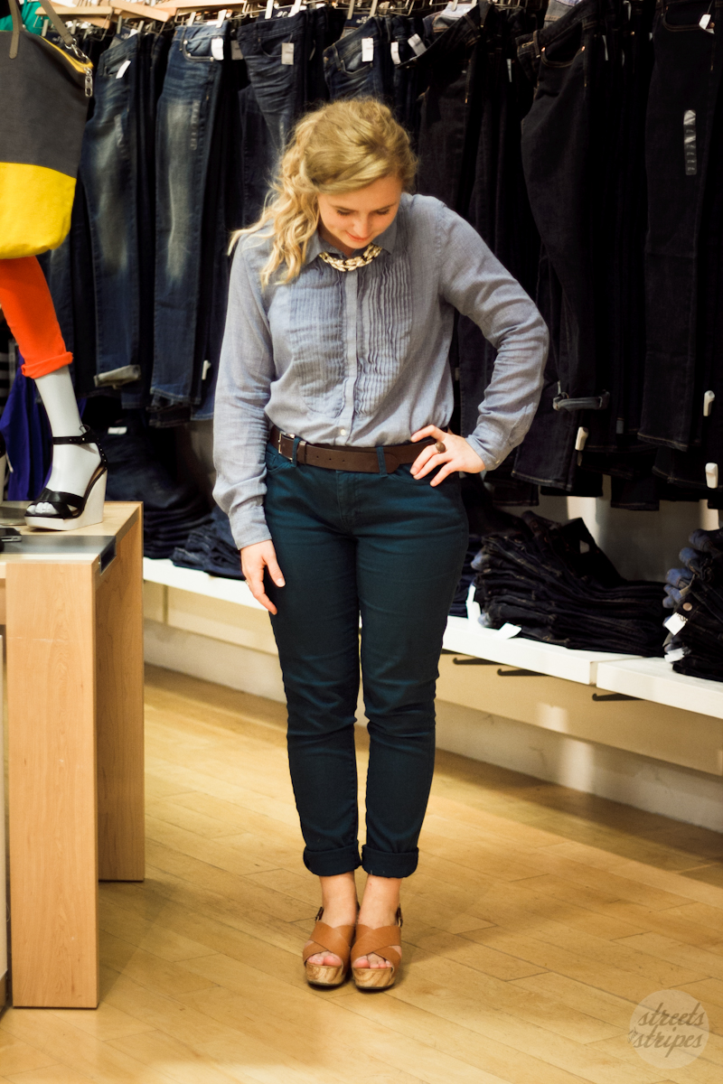 Attendees were encouraged to wear their favorite piece of Gap denim for a chance to win $200, so I threw on my favorite chambray shirt and called it a day. I’ve had this shirt for a while and I really like how I can wear it in the summer and not get too hot. It’s light weight was perfect for this evening out. You also might notice this new necklace from an Ebay auction I won recently. It was part of a vintage jewelry lot, and it also aided in my addiction to Ebay. It’s the thrill of competition with the joy of shopping. How do they know me so well?!